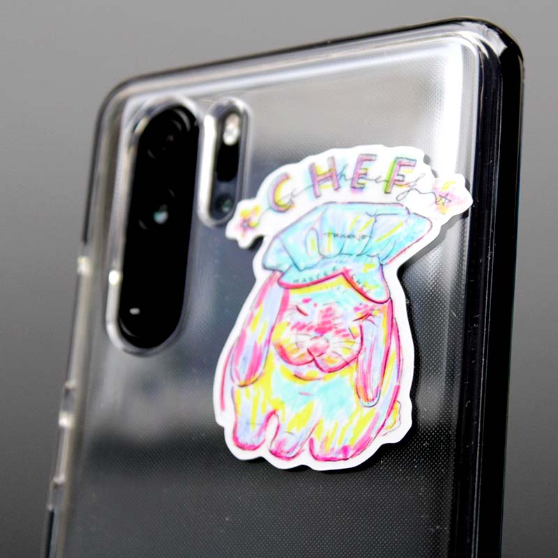 My original sketch as a part of my pastel series “Chef bunny pom pom” now as a sticker!
