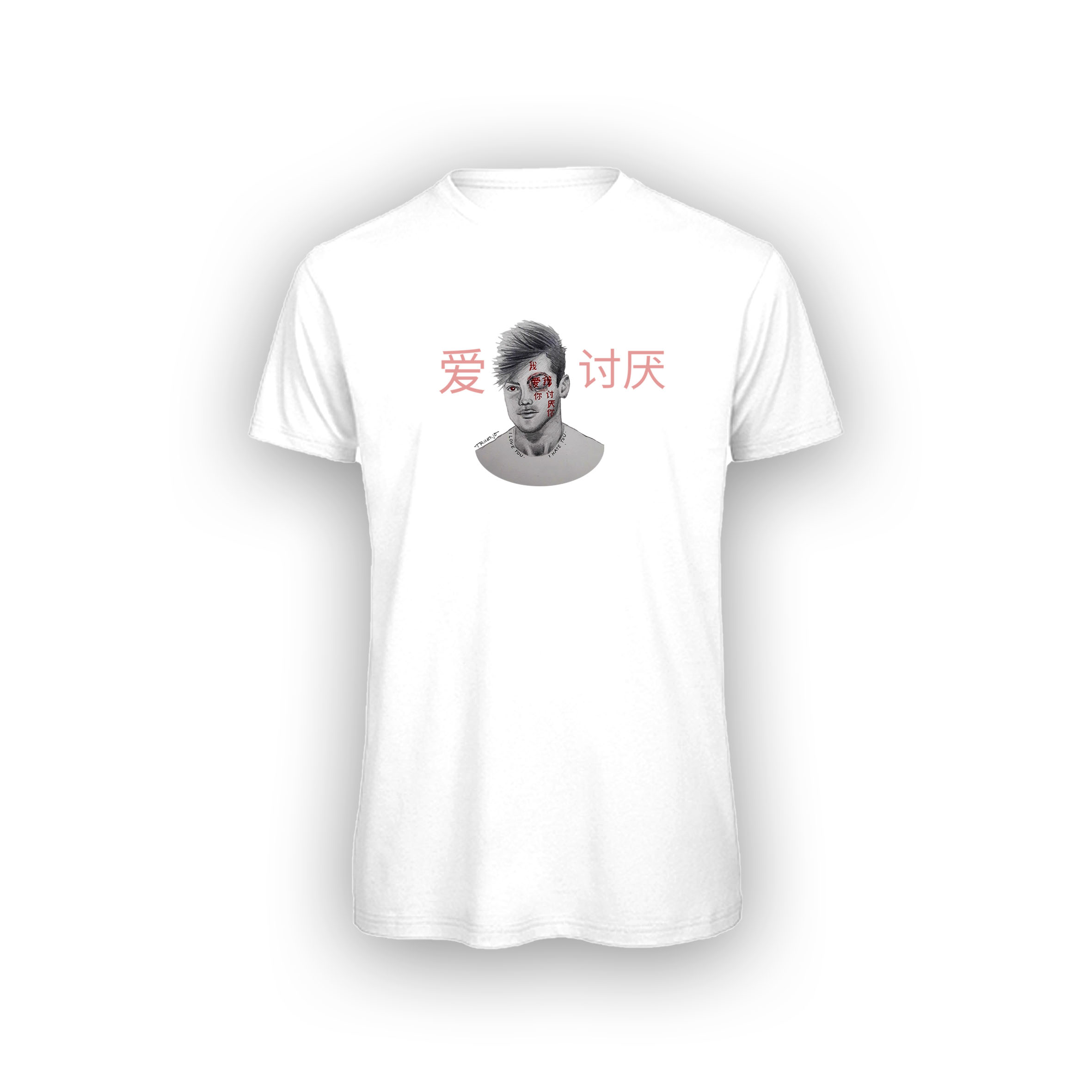 der Zeichnung “Love u hate u” einschließlich des Satzes “Liebe dich hasse dich” auf Chinesisch geschrieben.